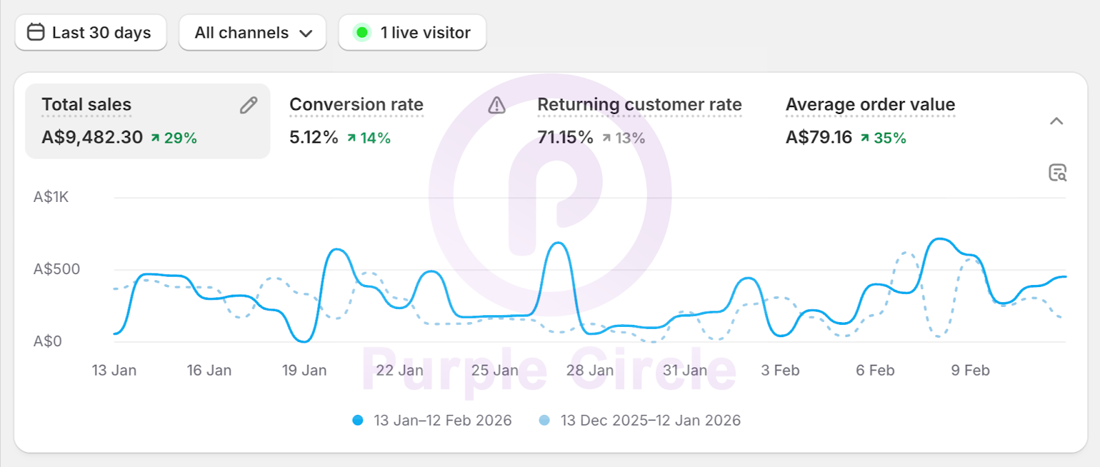 Average Order Value (AOV): A$79.16 (↑ 35%)